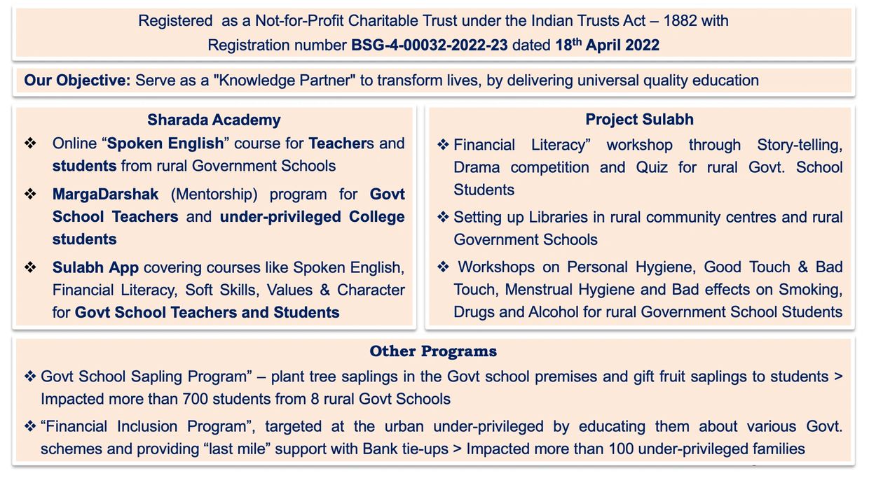 ⭐ Sharada Educational Trust is registered as a Public Charitable Trust