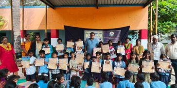 School Sapling event focused on creating environmental awareness, was organised at Govt. School, Cheemangala village, Chikkaballapur dist., attended by 107 students. 10 tree saplings were planed in the school premises and each student was given 2 fruit saplings to plant near their Homes.