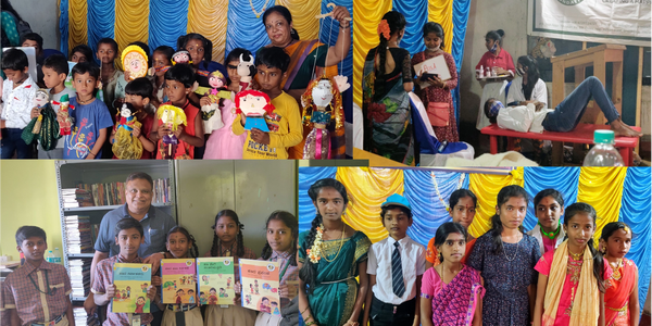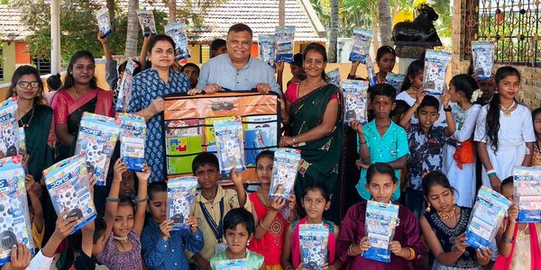 As part of Project JnanaShala, Library-in-Classroom kits are donated to Government schools, sourced from Pratham Books. These books are in English and regional languages covering a wide range of subjects/topics